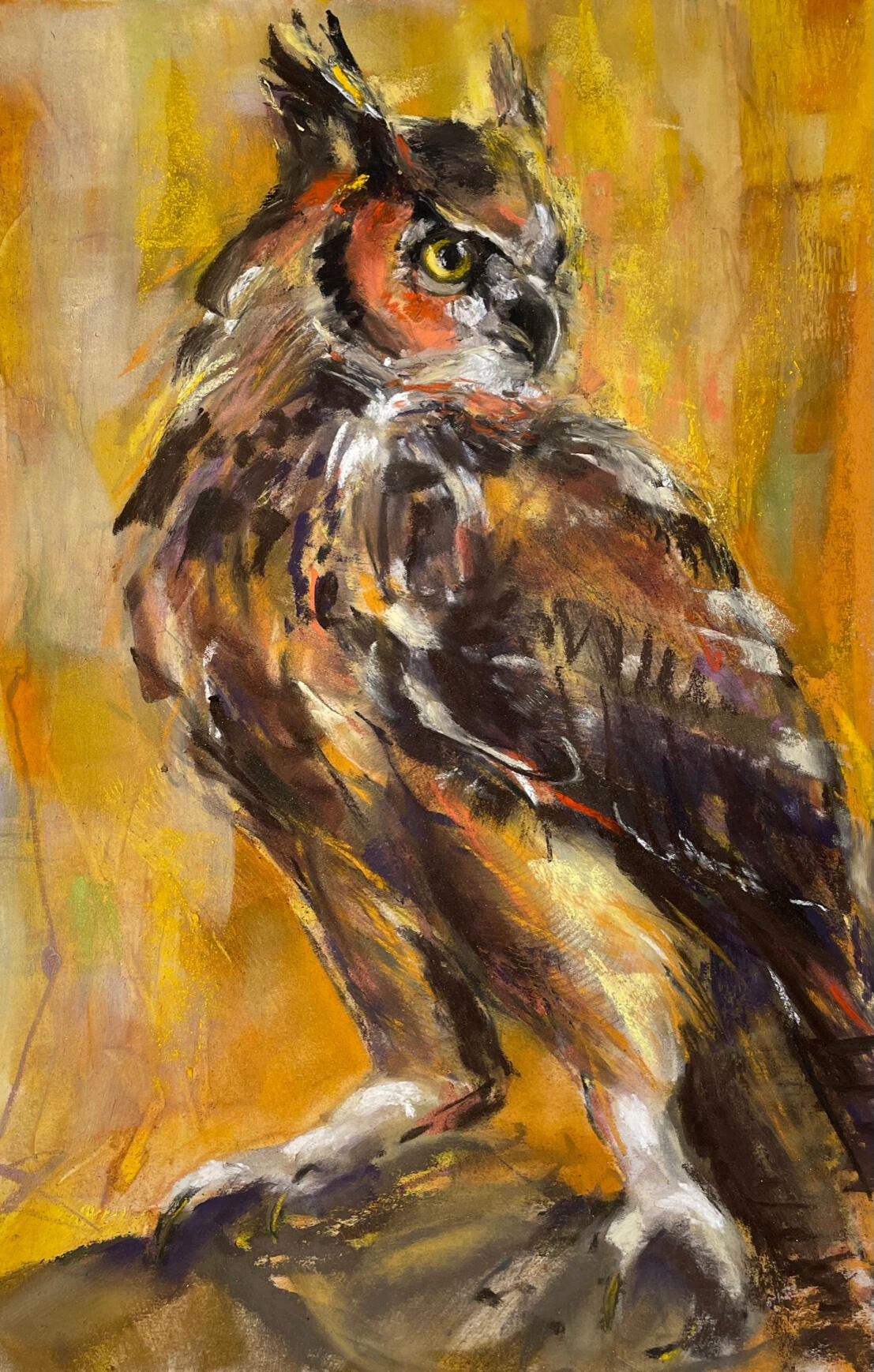 Welcome to my site. I hope you enjoy my paintings and feel the respect I have for the animals I've painted, and the joy I feel as I paint. The spirit of play and experimentation are central to my art practice. I am interested in movement and color and the feeling I have when I see an animal in nature. I love to watch birds in their habitats. Rather than rendering a photographic interpretation of a subject, I am more interested in a feeling or sense of the animal. I like to blend abstract art and realism. I try to intuit how much realistic attention each painting needs. It's important to me to leave space for the viewer to bring their own interpretations into their experience of a painting. All of the pieces pictured below are a combination of oil paint and pastel on paper.